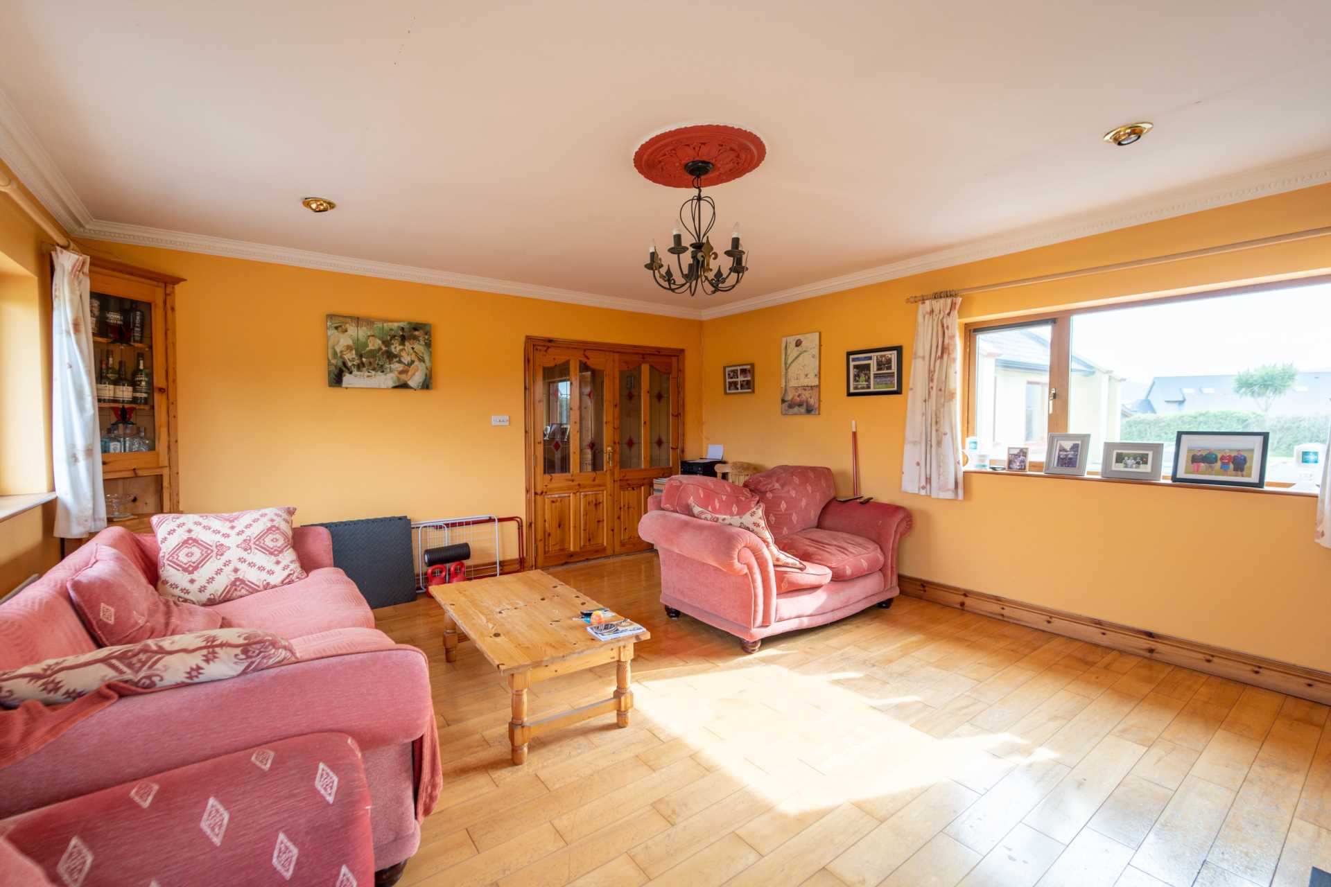 Modern, Spacious Detached Home which enjoys excellent views overlooking Smerwick Harbour & the surrounding countryside. Situated in a Private Estate of 6 Detached Homes, this house is in excellent turn-key condition. Conveniently located only a 10 minute drive from Dingle Town, it's also only a short distance from the Villages of Ballyferriter & Ventry. Accommodation comprises on the Ground Floor of a Hallway, Kitchen, Dining, TV Room, Living Area, Utility Room, Bathroom, 4 Bedrooms (2 Ensuite) & a Hot Press. The 1st Floor includes a Landing, 1 Bedrooms (Ensuite), a Store Room & an Office. The house is being sold fully furnished.